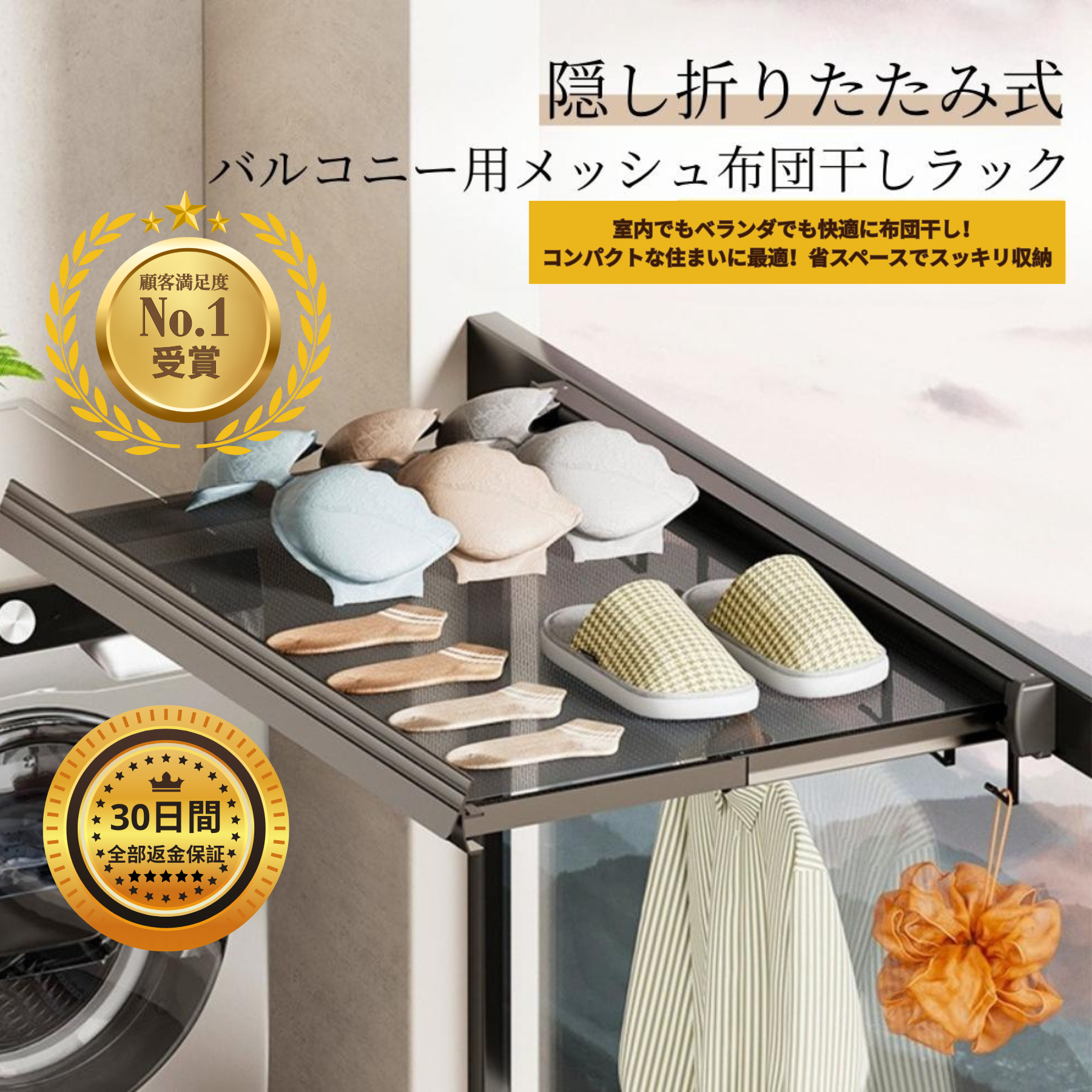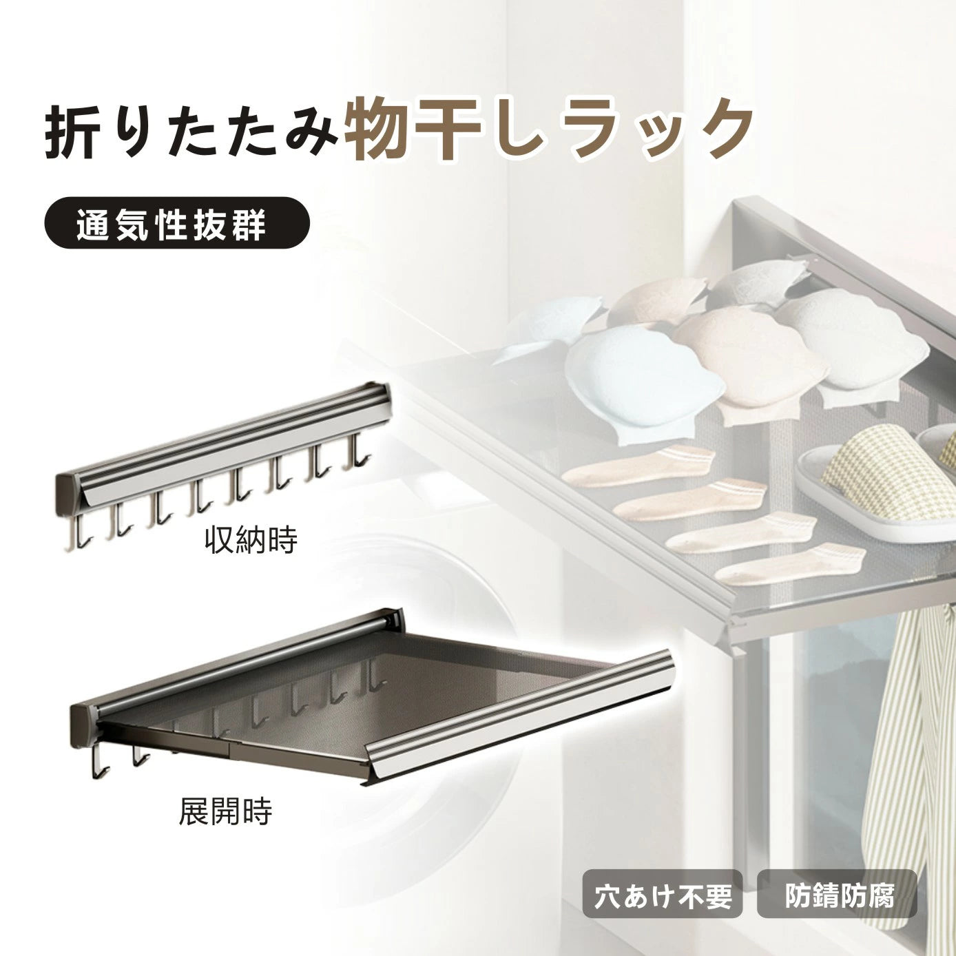 通気性抜群の厚手メッシュを採用しており、洗濯物が乾きやすくカビの心配もありません。